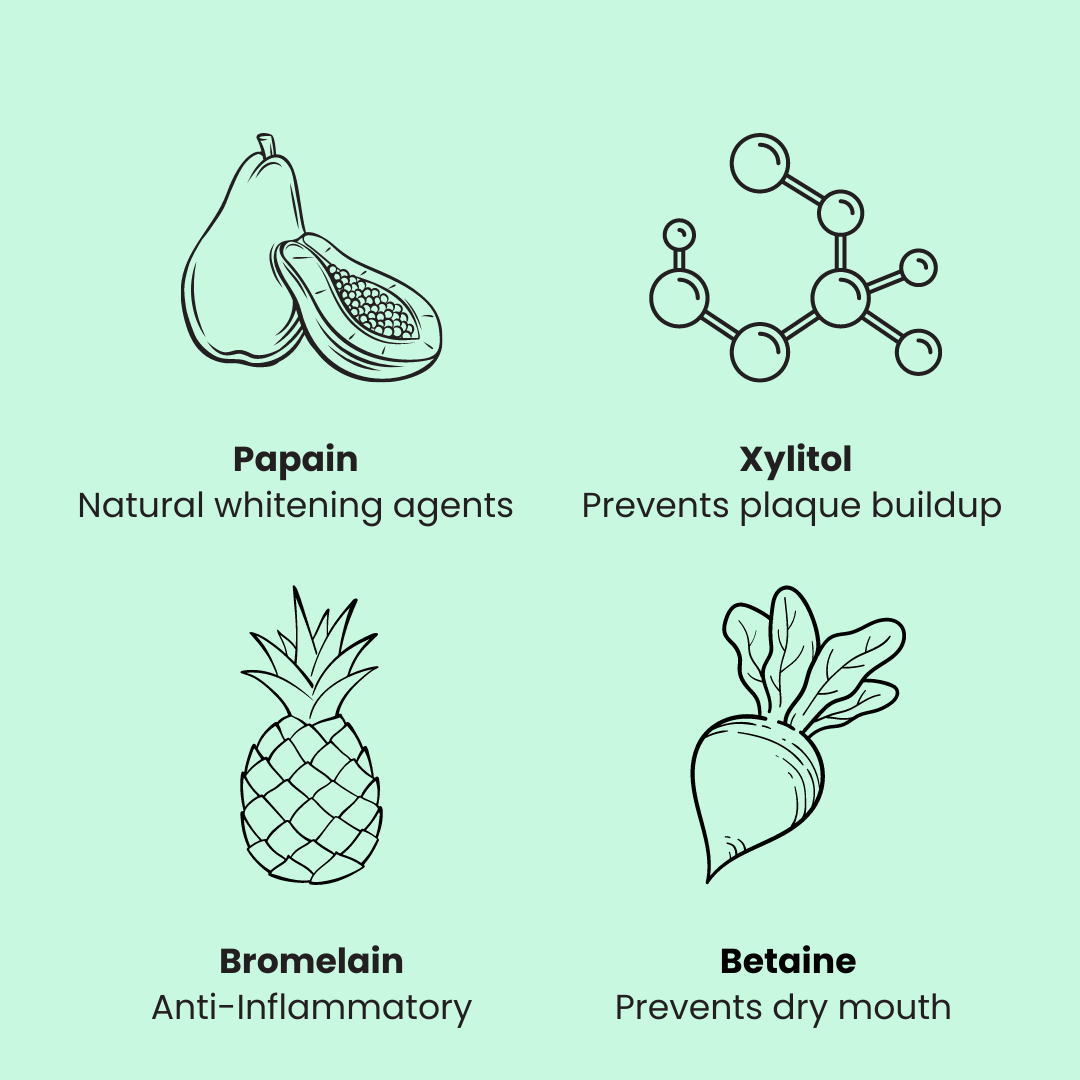 🥬 Betaine - from beets, prevents dry mouth and promotes gum health